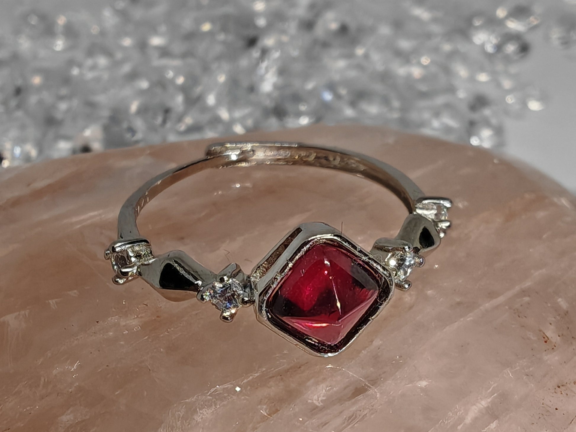 Garnet Pyramid - Sterling Silver Adjustable Ring up to Size R
