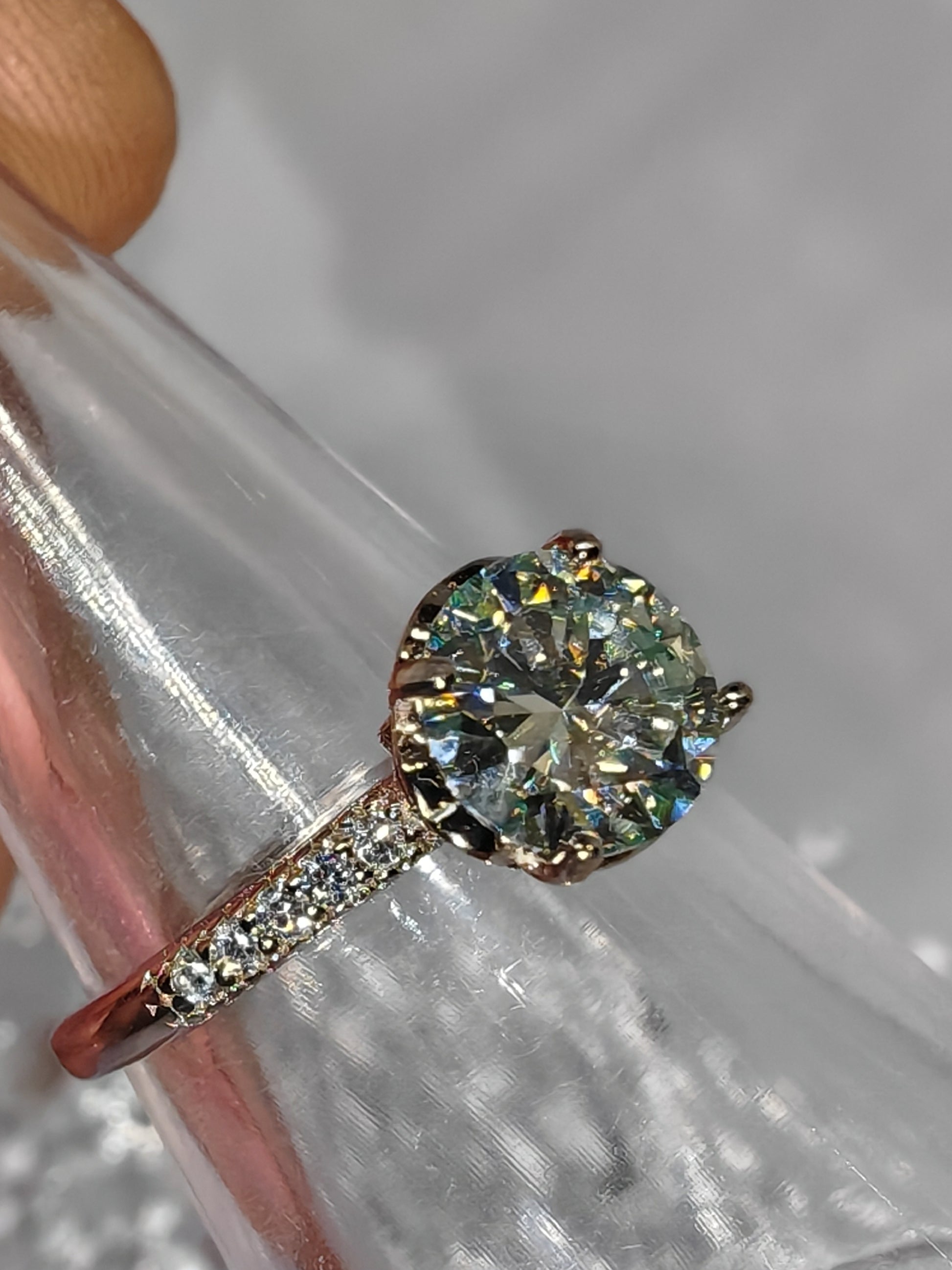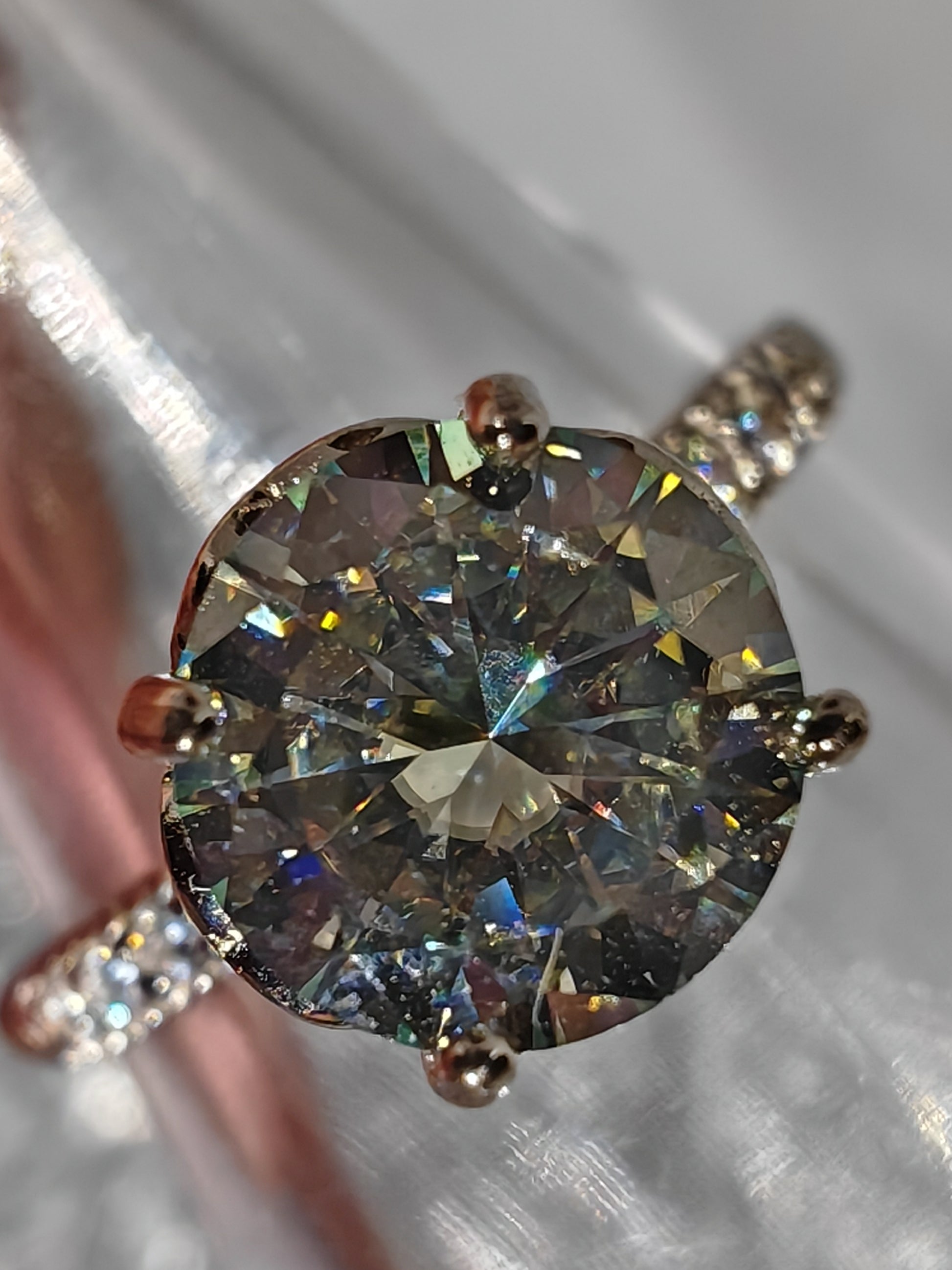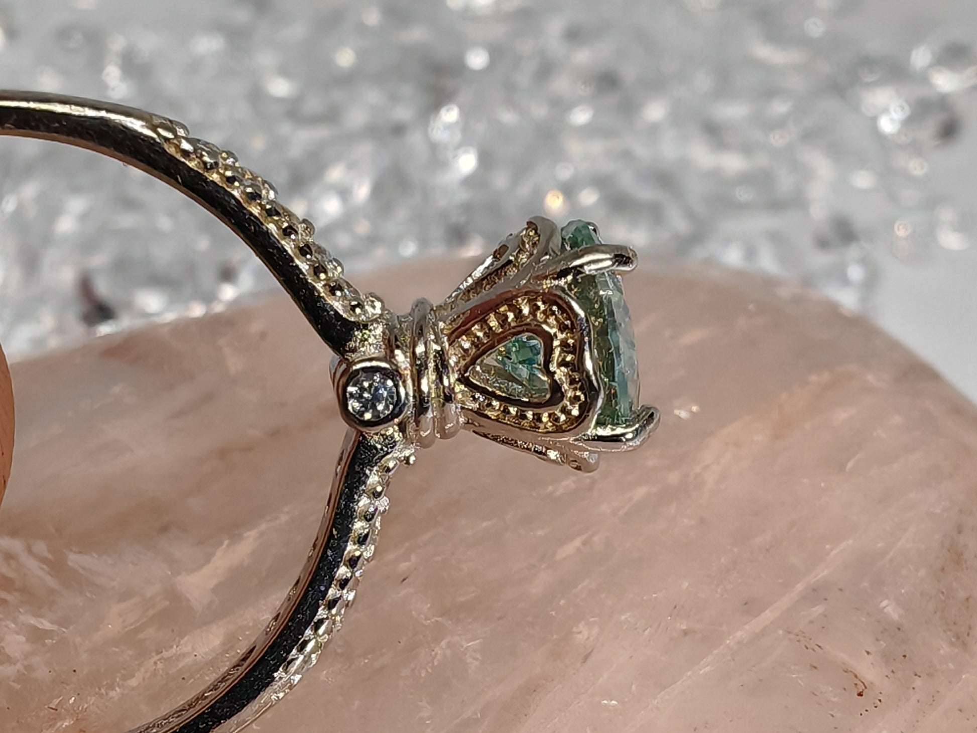 Expertly crafted with a stunning 6mm moissanate stone, this Heart Tower ring shines with a slight blue tint. Set on a carved Sterling Silver band and accented by cubic zirconia shoulders, this adjustable ring showcases the beauty and durability of moissanate, a rare, lab-created gemstone with nearly the same hardness and brilliance as a diamond.