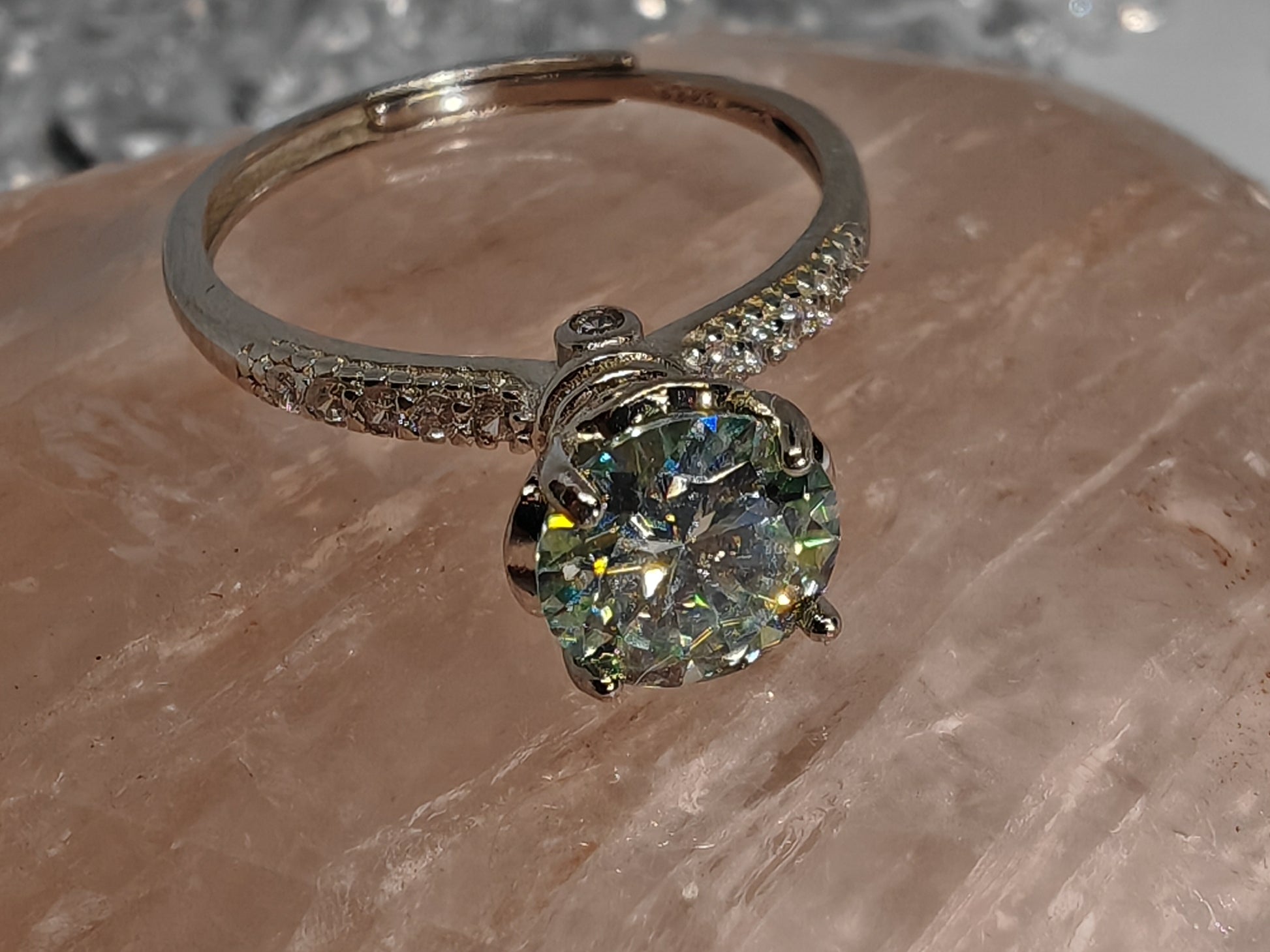 Heart Tower Moissanate - Sterling Silver Adjustable Ring up to Size R