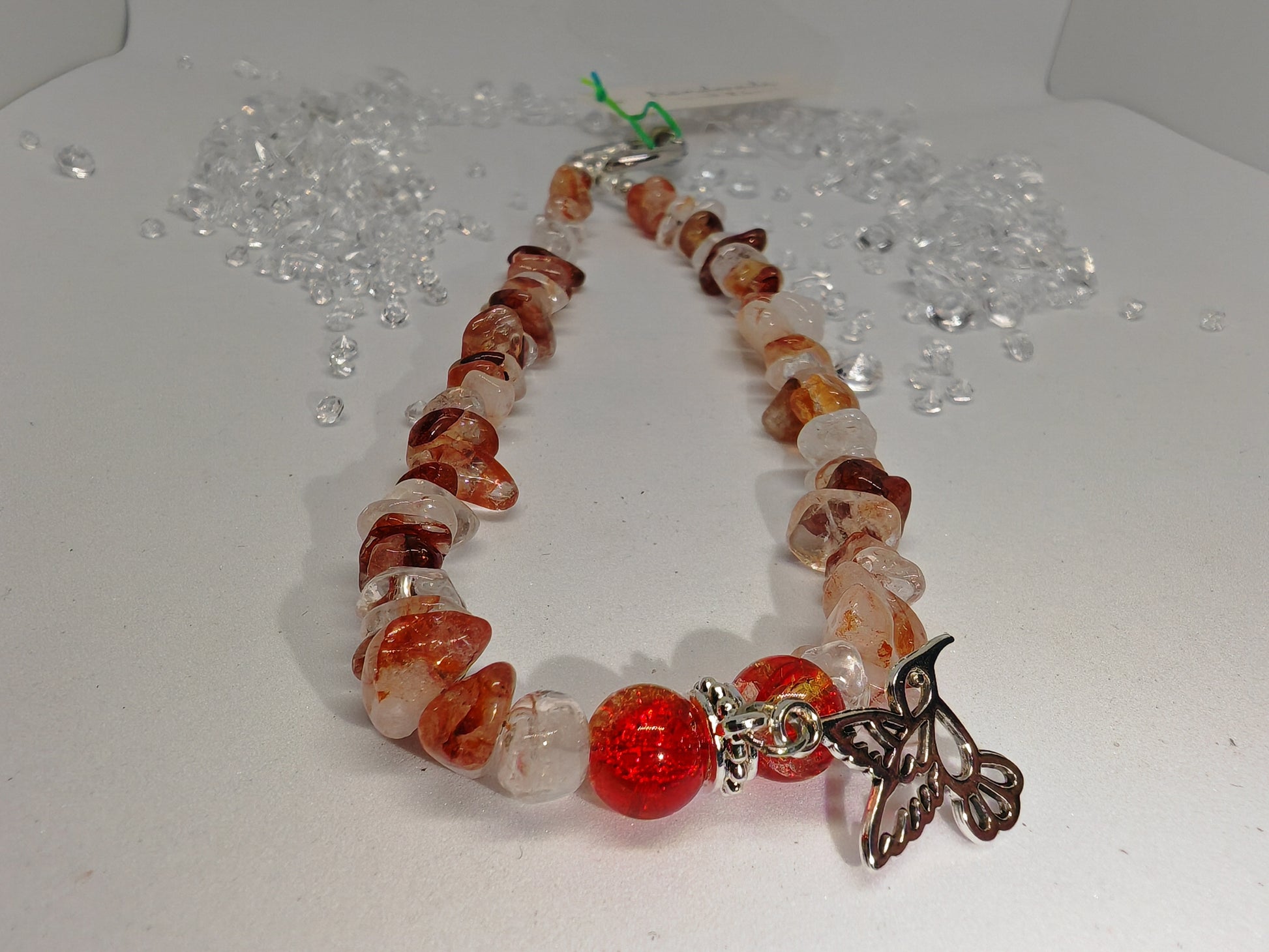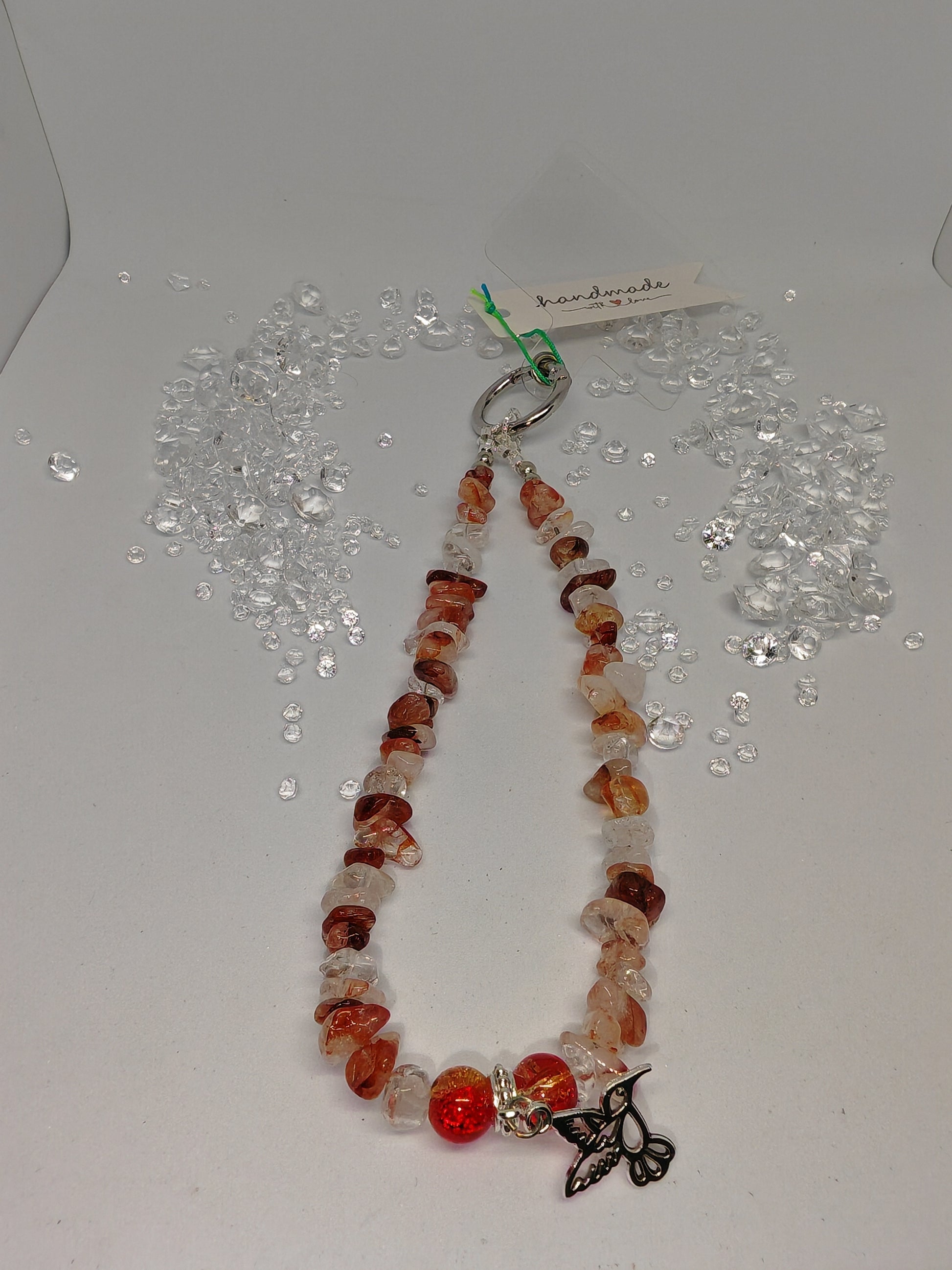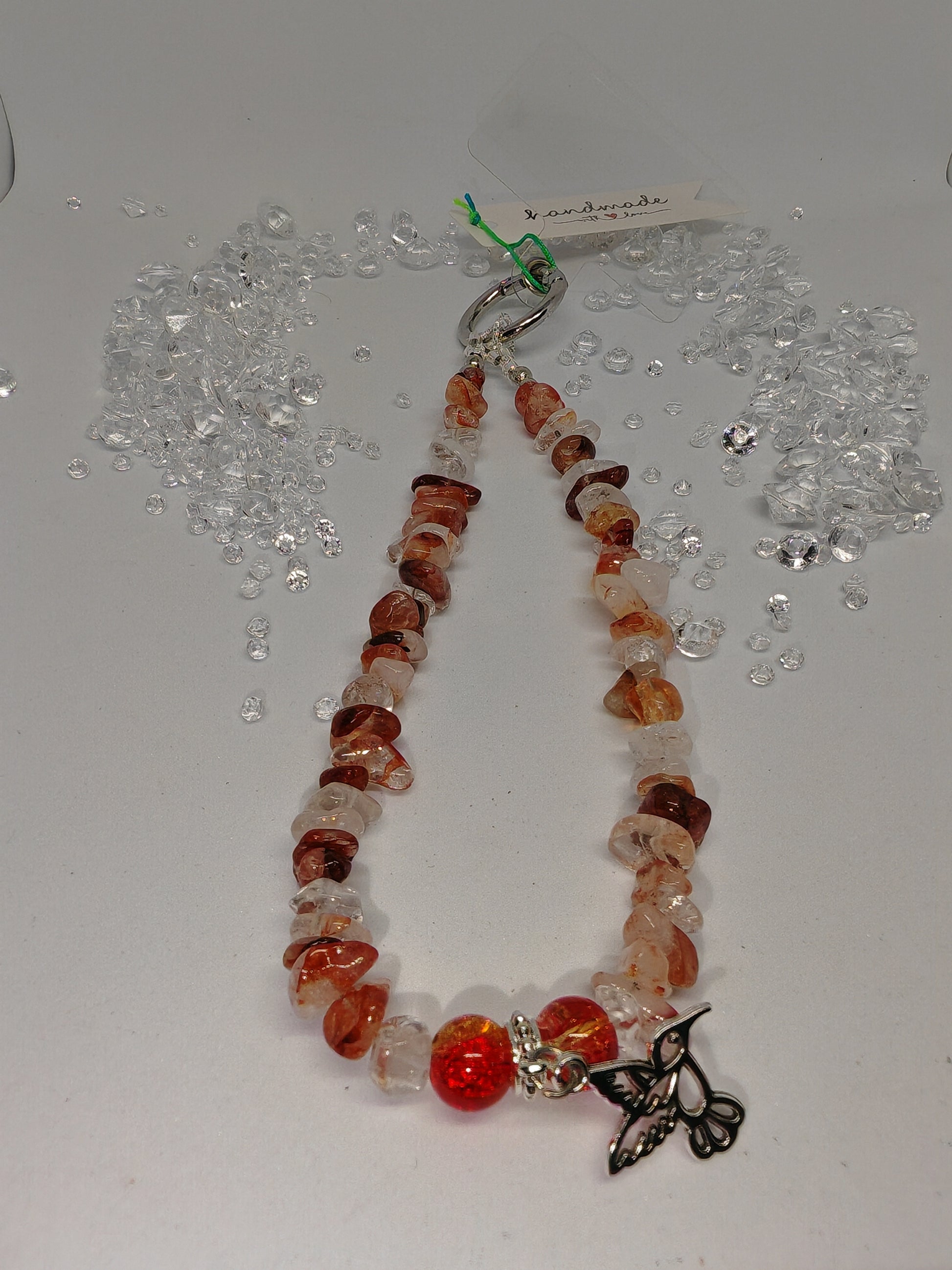 Enhance your phone with our Hummingbird Phone Charm Wristlets, featuring luxurious Fire Quartz chips and an elegant Hummingbird charm. Handmade with attention to detail, this accessory can hold your phone and adds a touch of sophistication to your case. Elevate your style and show off your unique taste with our exclusive wristlets.