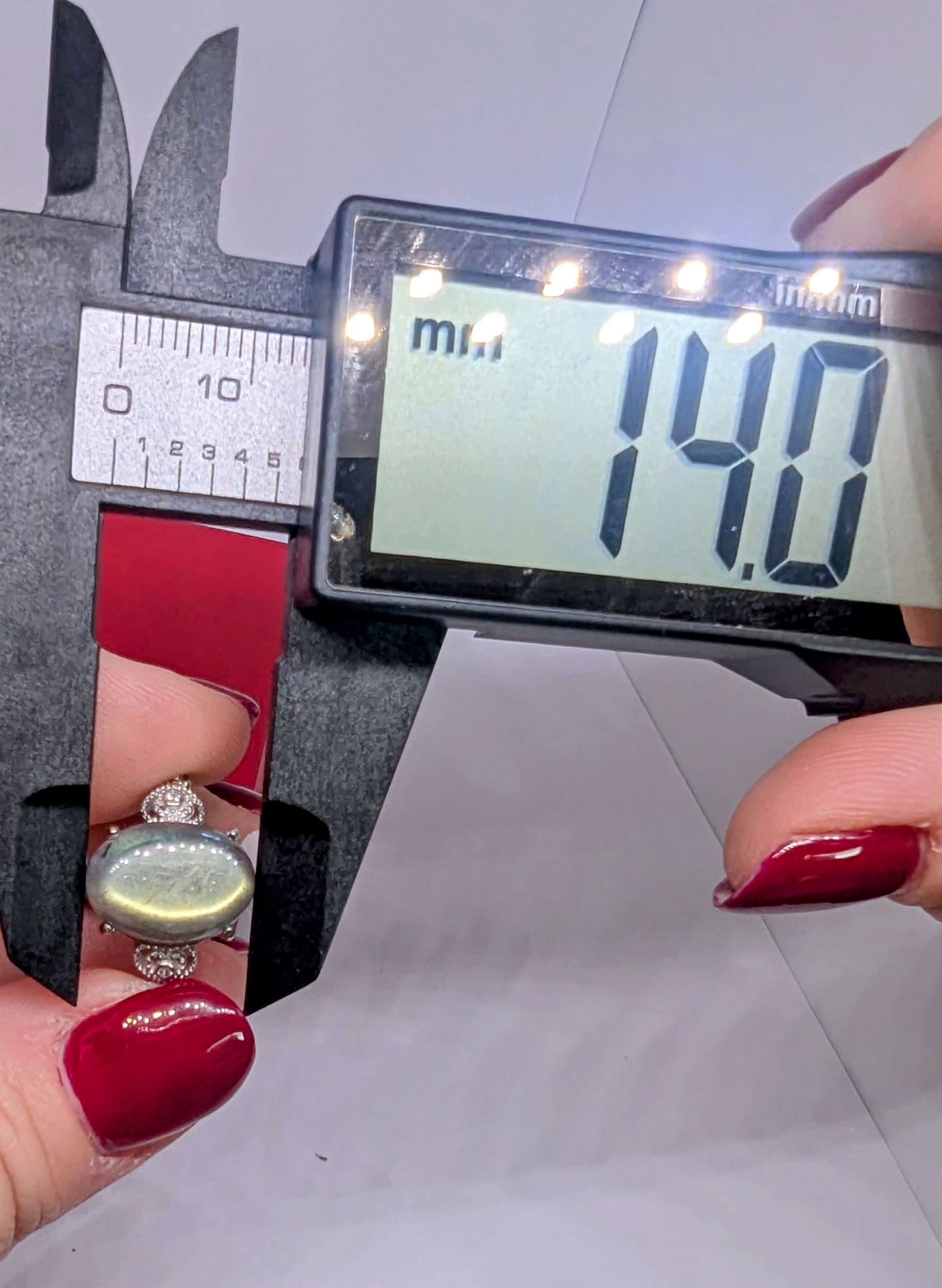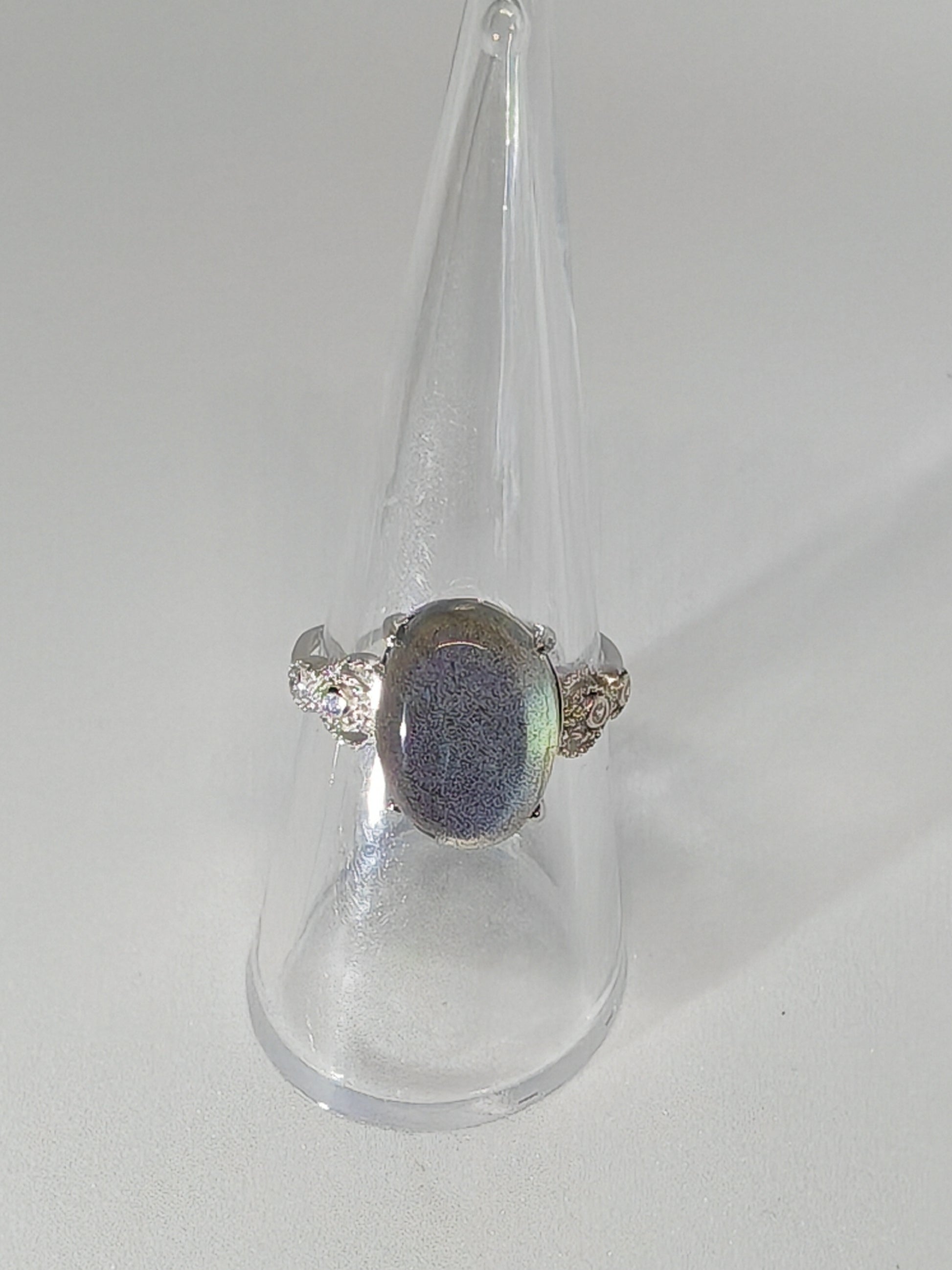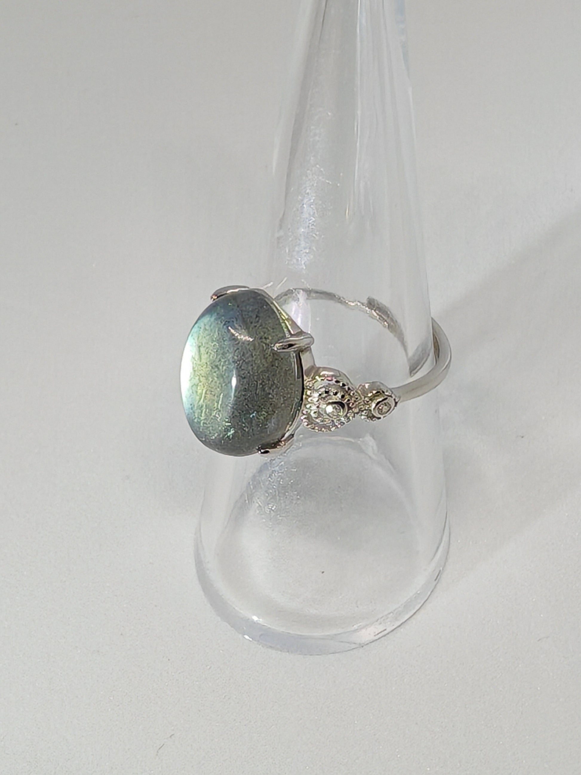 Large Labradorite - Sterling Silver Adjustable Ring with CZ Hearts up to Size (R)