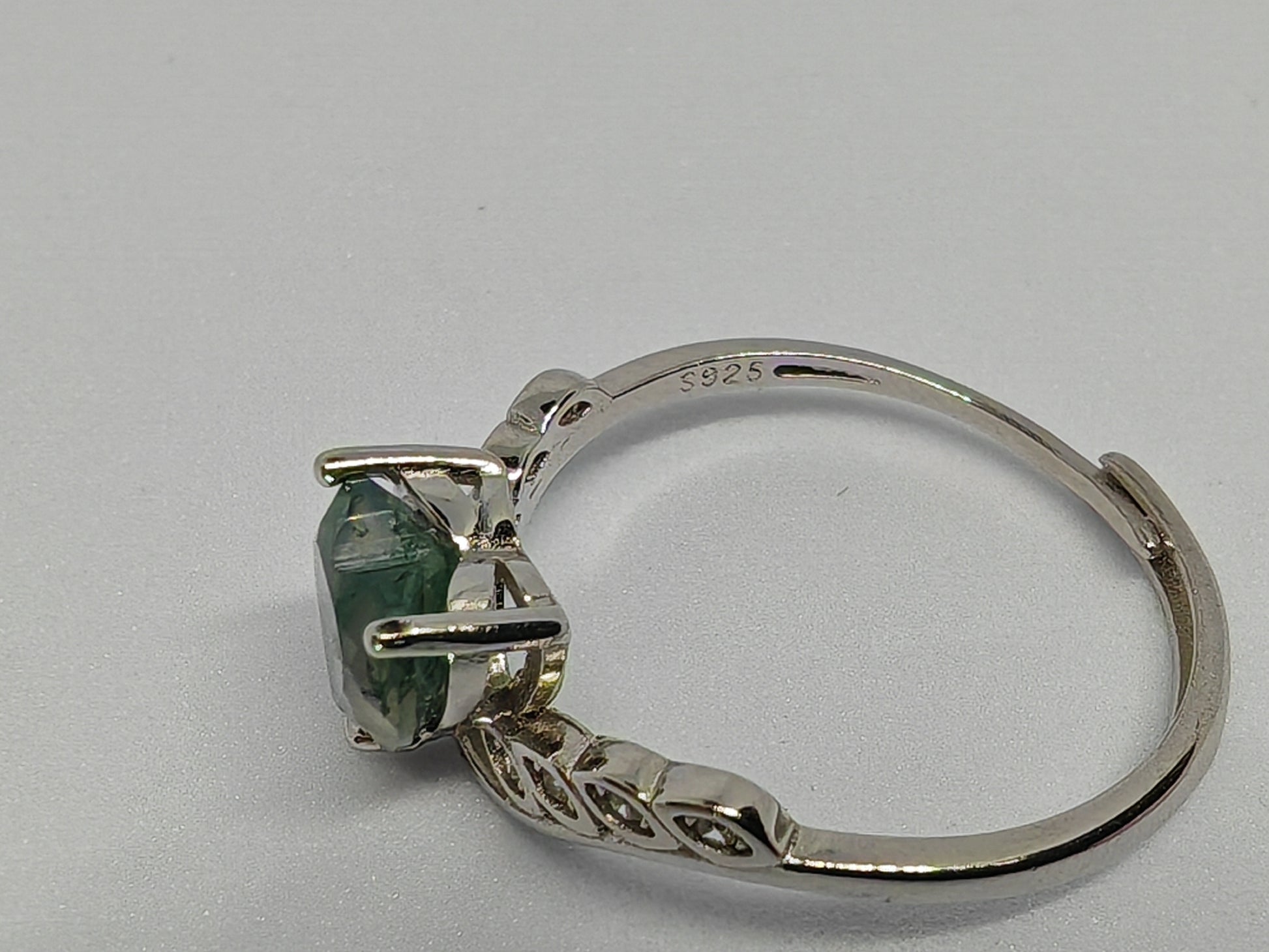 Set in an adjustable sterling silver band, this ring looks like you have your own little forest shining through.