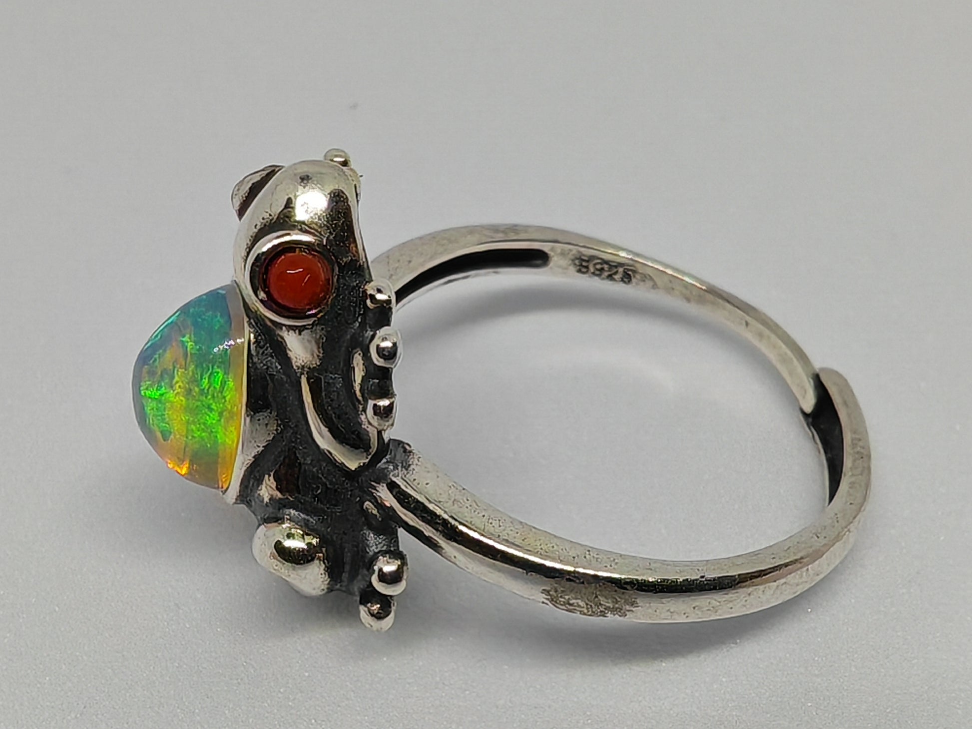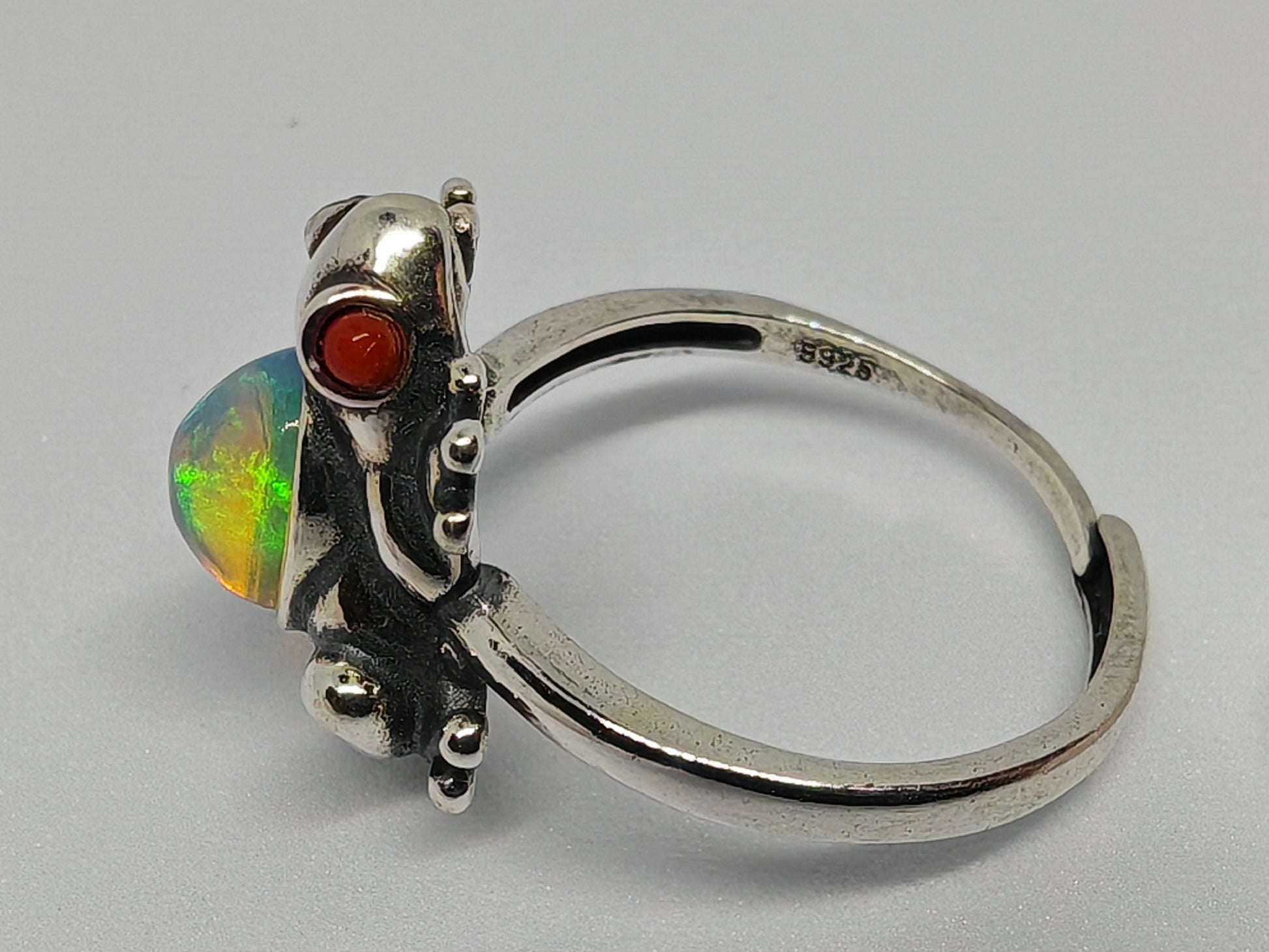 Red Eyed Opal Frog - Sterling Silver Adjustable Ring up to Size (S)