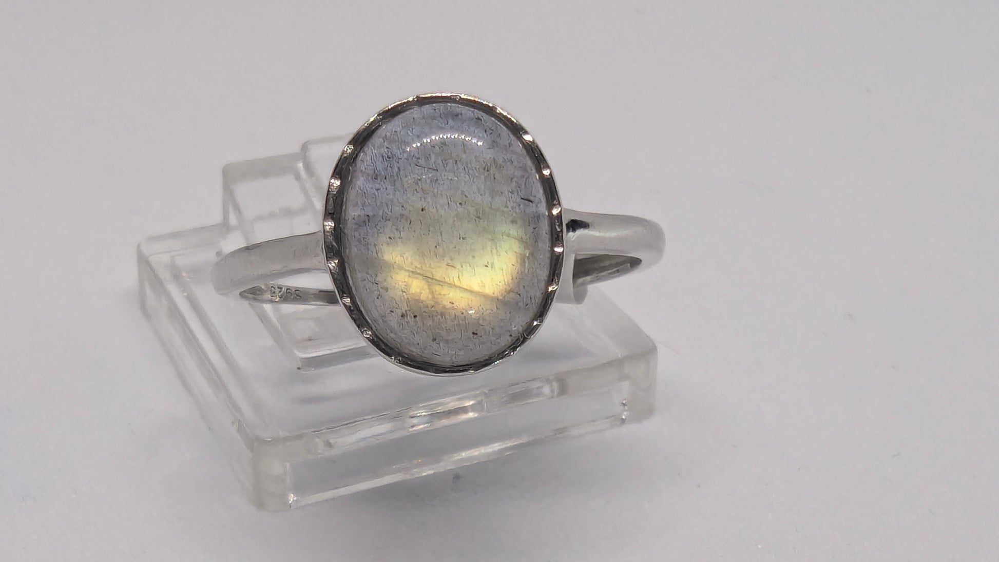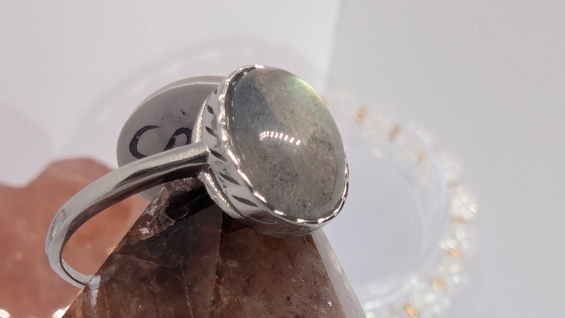 This Round Lab adjustable ring is expertly crafted with sterling silver and features a flashy round labradorite natural stone. The S925 encasing ensures quality and the adjustable sizing allows for a perfect fit up to a size S. Make a statement with this elegant and versatile piece.