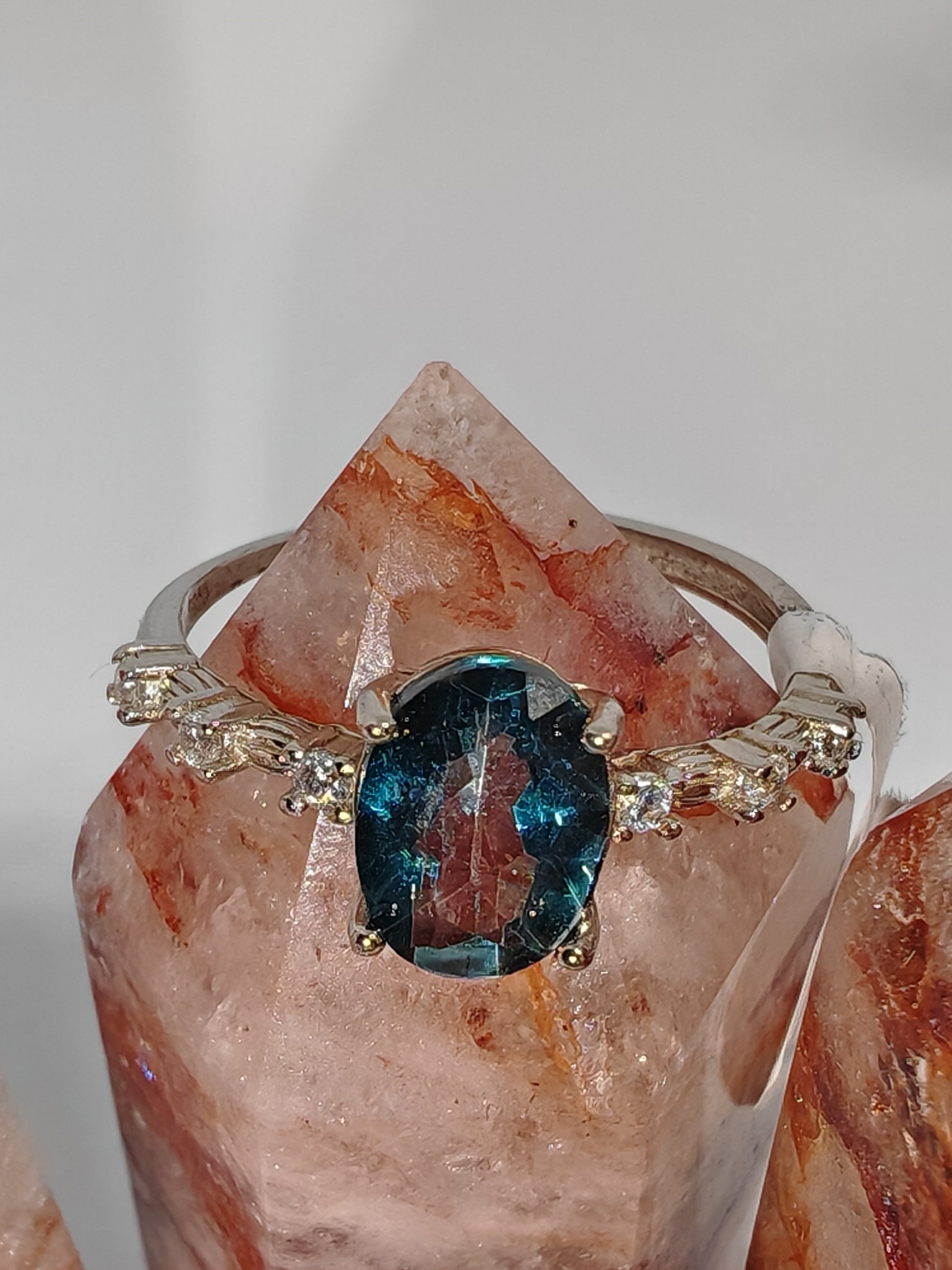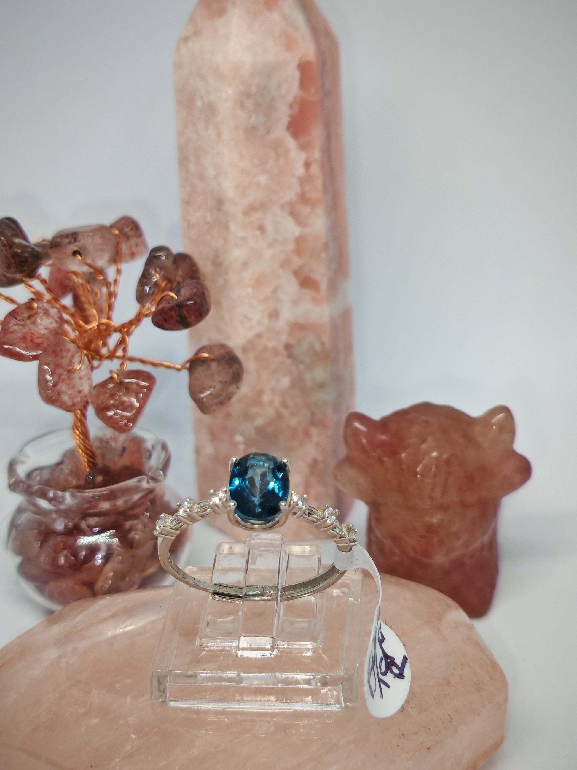 This exquisite Topaz Sparkle sterling silver ring features a stunning 7.5mm blue topaz stone, accented by sparkling cubic zirconia shoulders. The adjustable design allows for a comfortable and customizable fit, making it perfect for any occasion. Expertly crafted with high-quality sterling silver, this ring is a timeless addition to any jewelry collection.