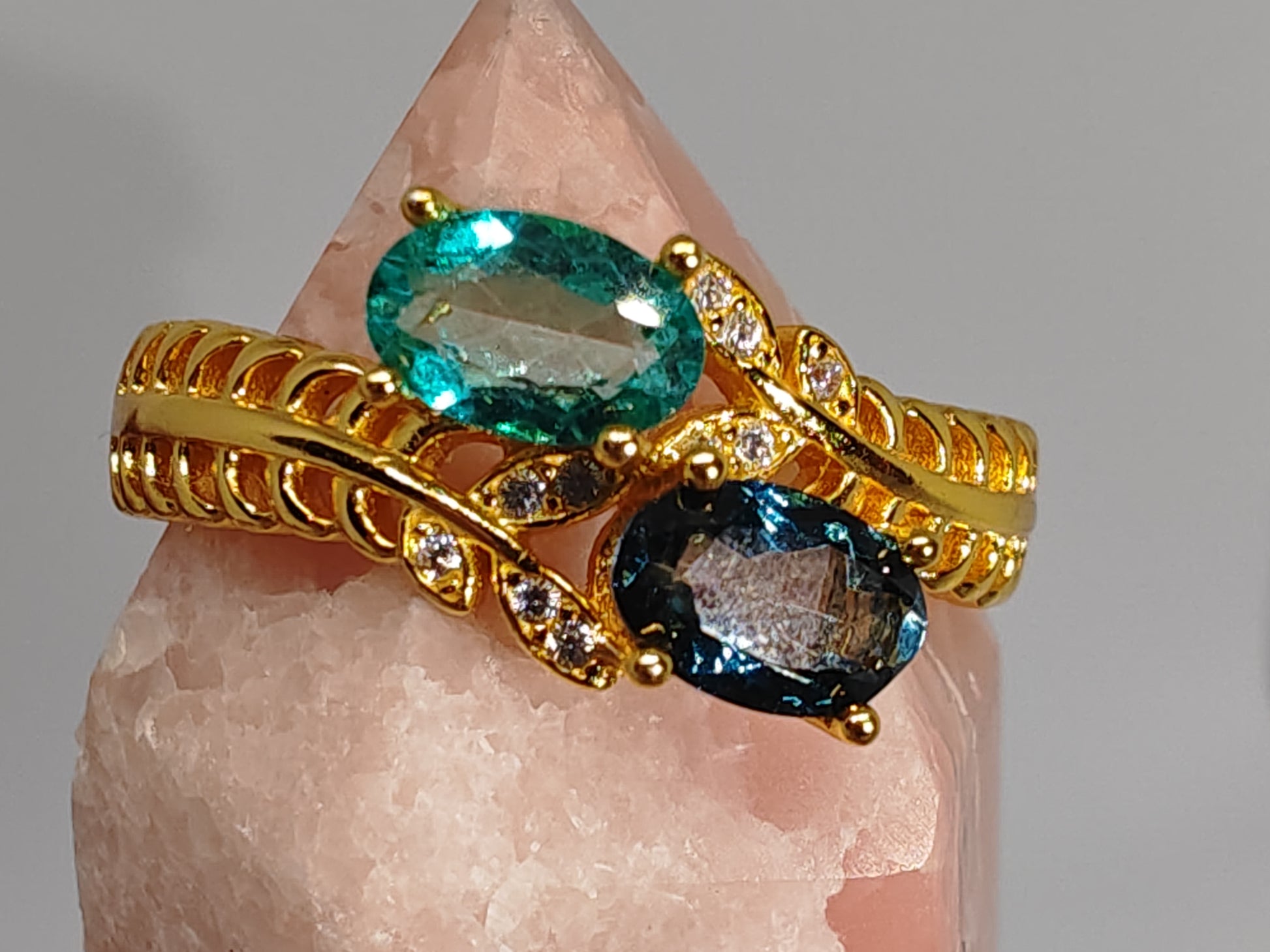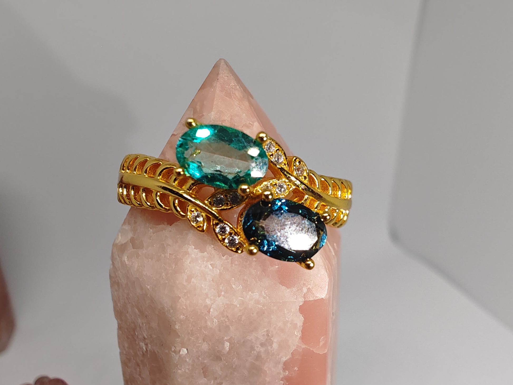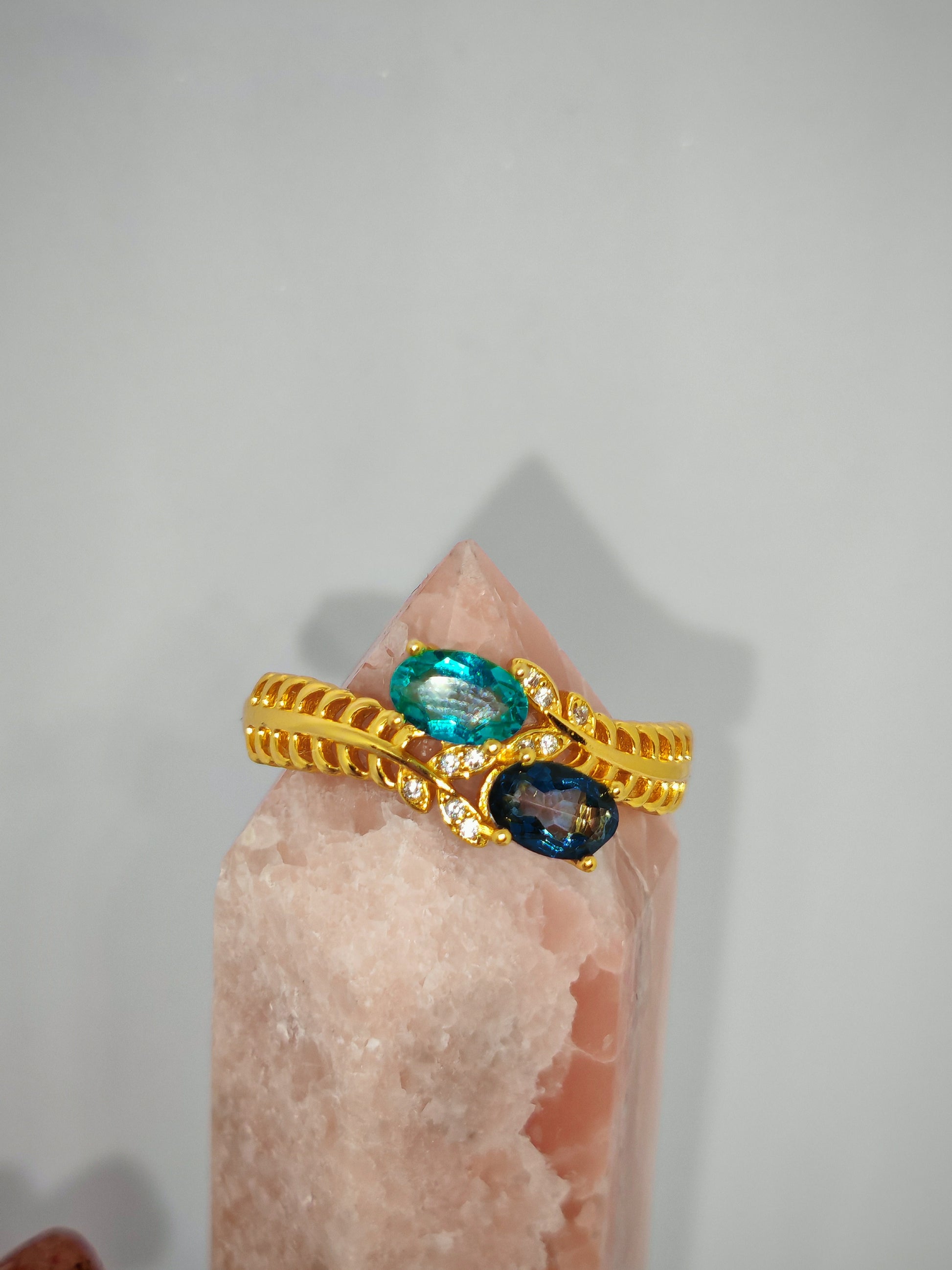 Add a touch of whimsy to your outfit with our Two Blue Flowers ring! Crafted from gold-plated sterling silver, this adjustable ring features two delicate flowers and a leafy band, effortlessly blending nature and elegance. It's perfect for anyone who loves to stand out with quirky and unique accessories.