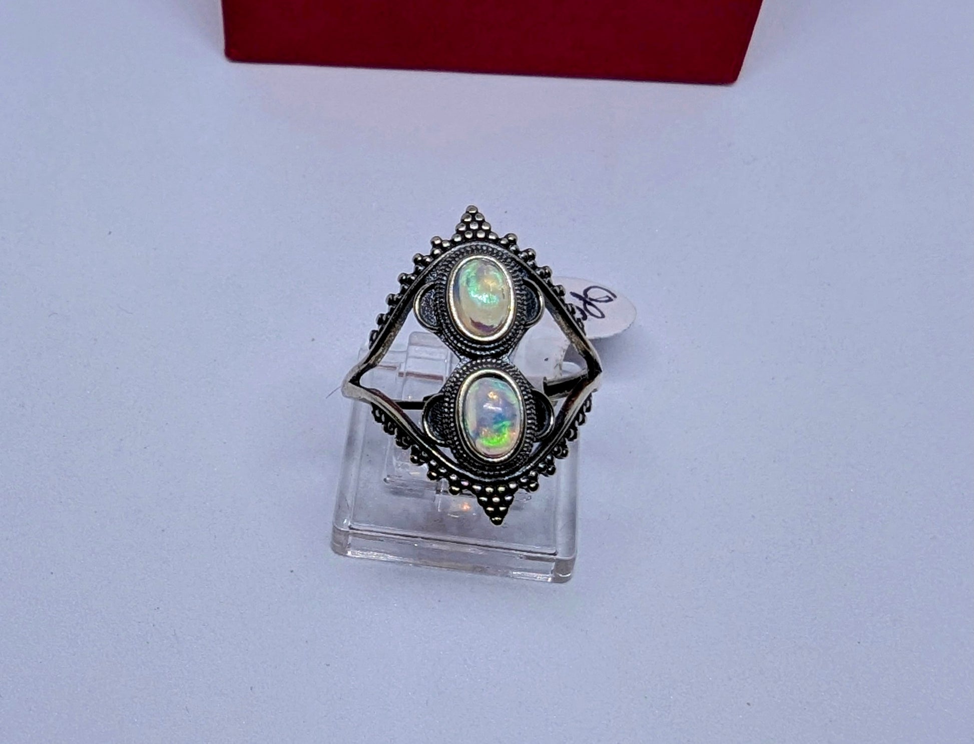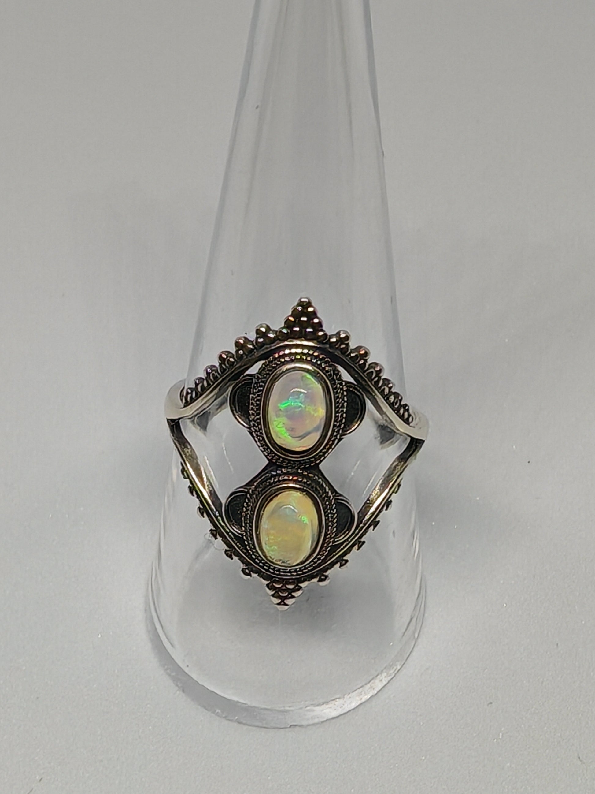 Double Opal Classic - A Dual Opal Stone Ring In a Bold Sterling Silver Band (U)